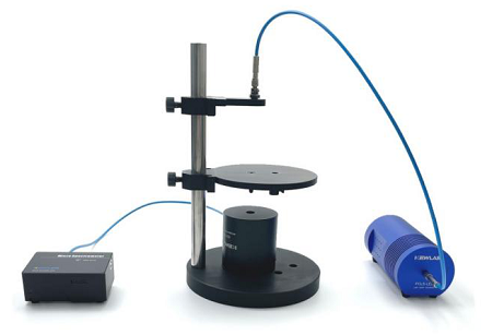 ST-RT 該支架包括可調(diào)滑軌、底座、樣品臺(tái)以及兩個(gè)準(zhǔn)直透鏡,其中上端準(zhǔn)直透射將光纖出射光準(zhǔn)直輸出到待測樣品上,下端準(zhǔn)直透鏡將透射樣品后的光收集耦合入光纖。樣品臺(tái)上放置待測樣品。支架側(cè)邊有可調(diào)滑軌,根據(jù)實(shí)際樣品尺寸調(diào)節(jié)光程。