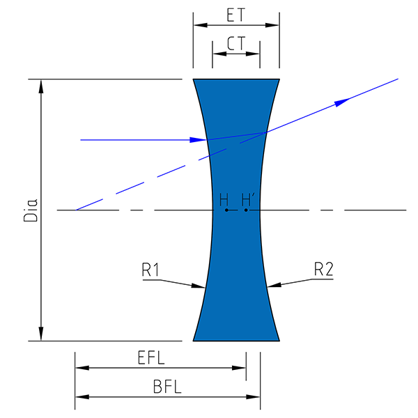 直徑:10mm;焦距:-10mm